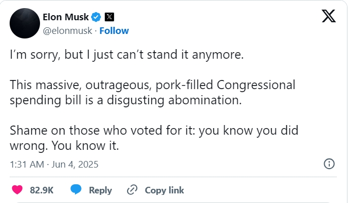 嘉盛官网登陆入口:马斯克怒喷特朗普“大而美”法案:忍不了了 令人厌恶至极
